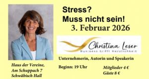 Gelassenheit ist möglich – denn wir haben mehr Einfluss, als wir glauben! Das war ein sehr interessanter Vortrag am 3. Februar 2026. An diesem Abend gab Frau Christina Leser, Inhaberin